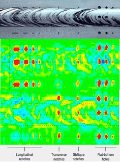 • Faster testing and detection of longitudinal, obique and transverse cracks (to 10mm deep) in a single pass (50mm coverage, 12metre per minute scan speed, simultaneous scan of weld cap, toe area and HAZ) using tangential ECA