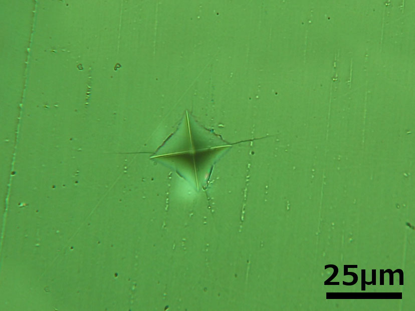 The Vickers Micro-hardness test is the same test method as Vickers hardness test except the test force applied is below 49.03N (5kgf). The test method is employed on the cross section of thin material, to measure hardness of micro constituents and microstructure transformation zones.